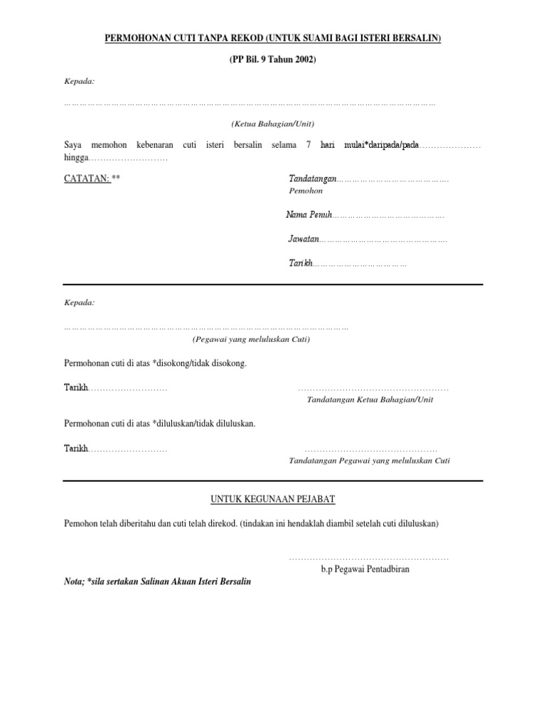 Borang Cuti Tanpa Rekod Untuk Suami Bagi Isteri Yang Bersalin Pdf