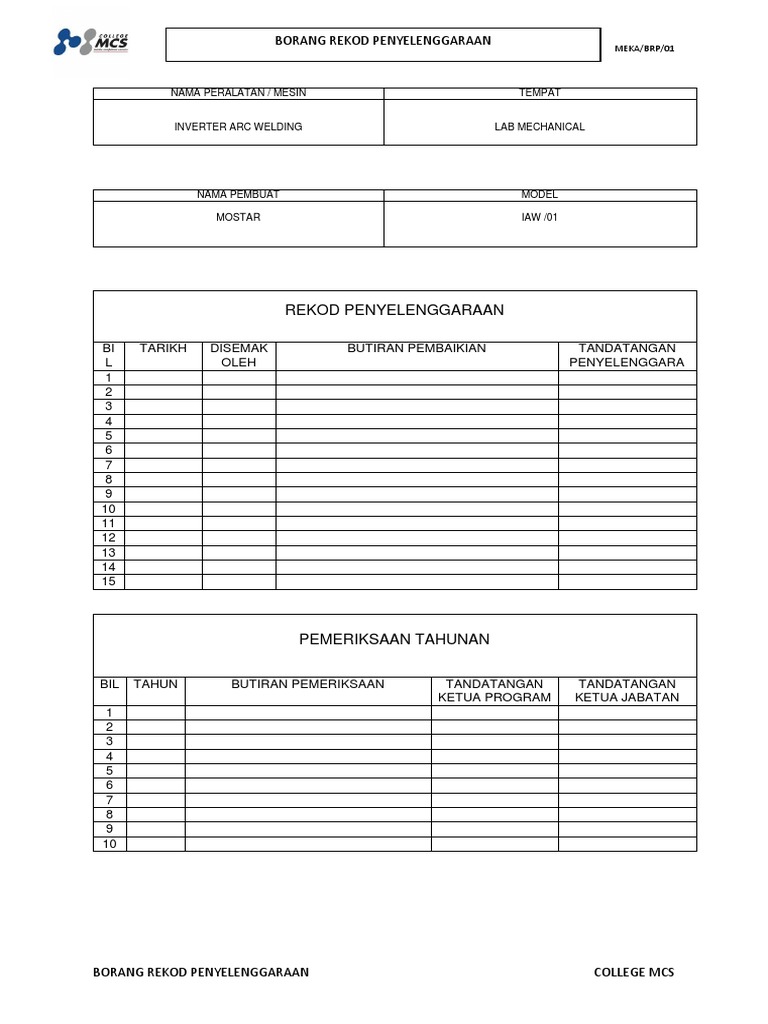 Contoh Rekod Penyelenggaraan Berjadual Pdf