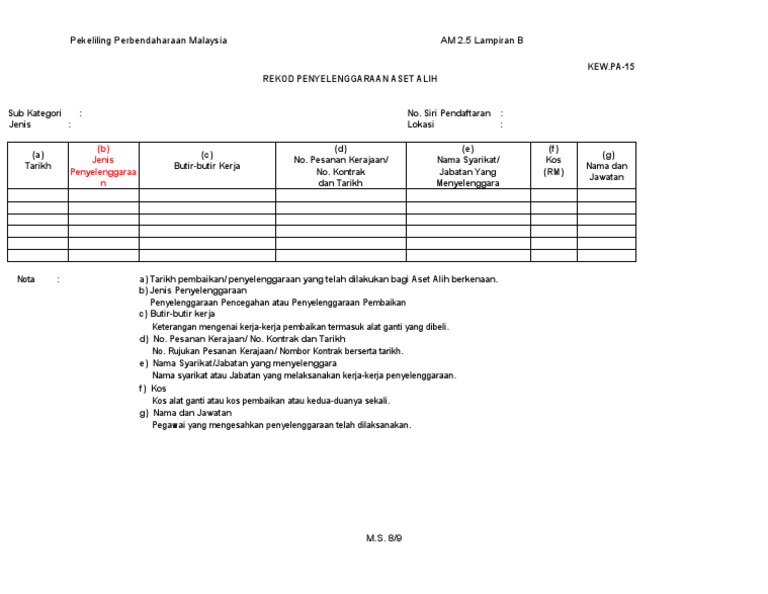 Kew Pa 15 Rekod Penyelenggaraan Pdf