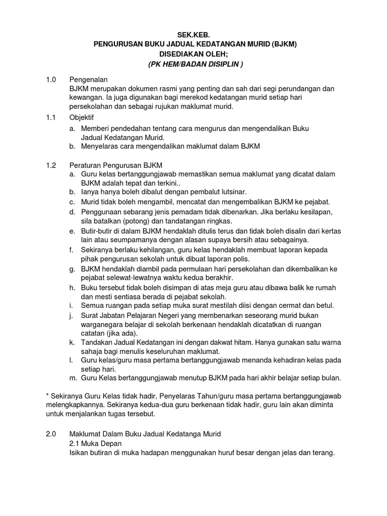 Pengurusan Buku Rekod Kedatangan Murid Pdf