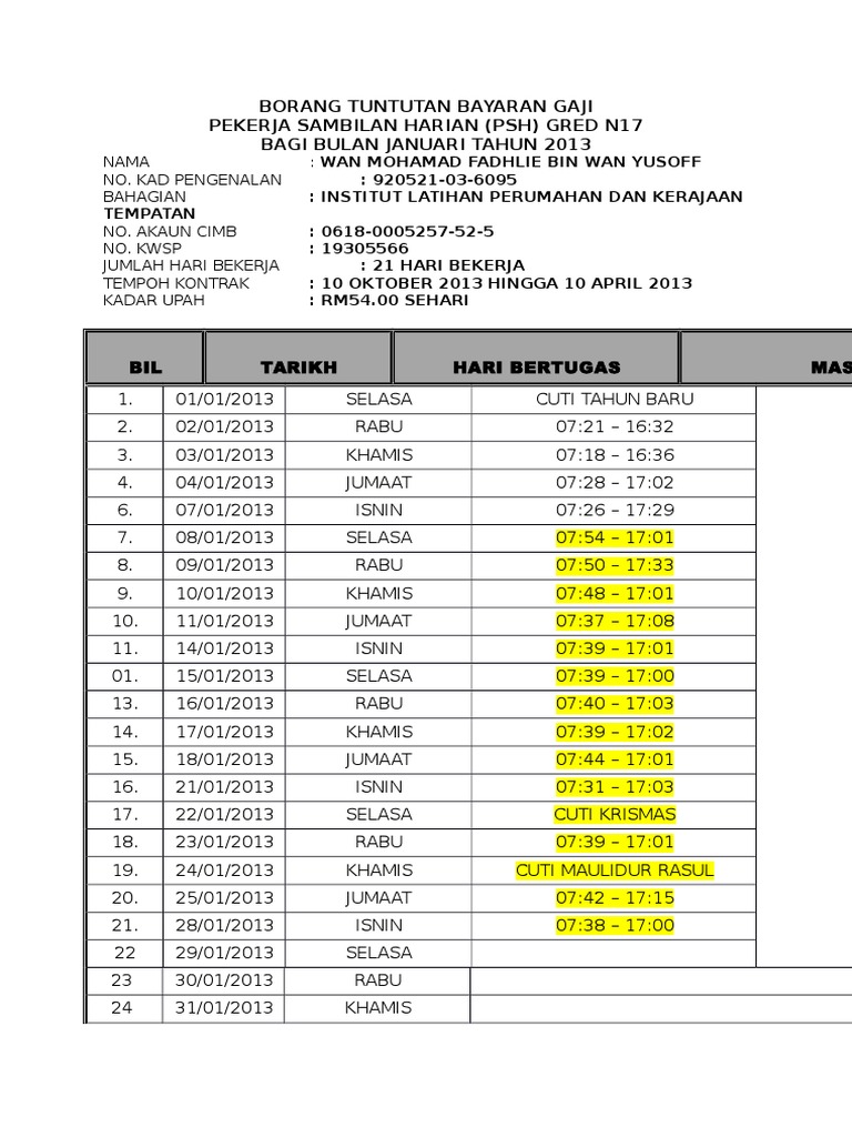 Borang Tuntutan Bayaran Gaji Wan Januari Pdf