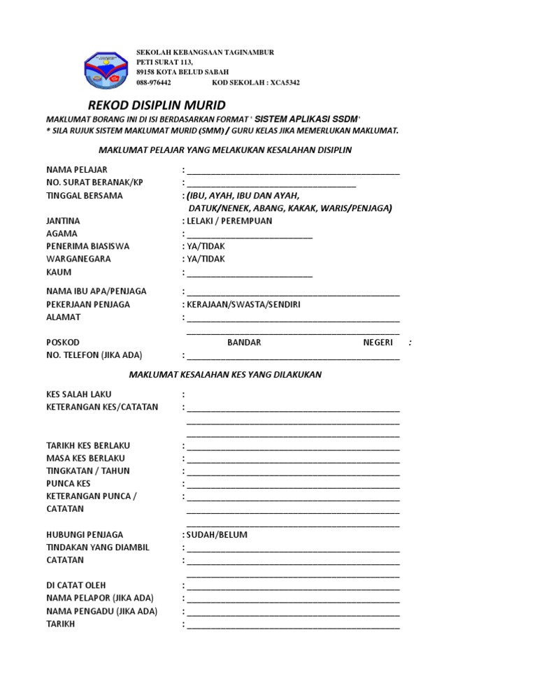 Borang Rekod Kesalahan Disiplin Murid Download Documents
