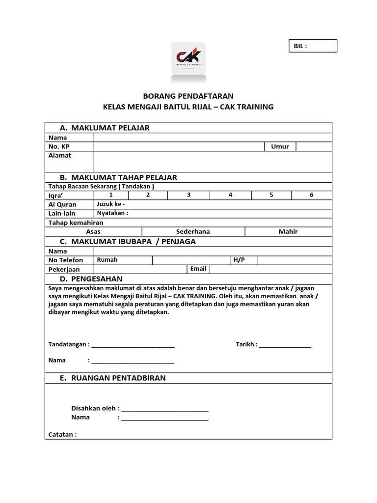 Borang Pendaftaran Mengaji Pdf