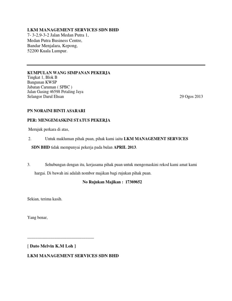 Surat Kwsp Bln4 Tiada Pekerja Pdf