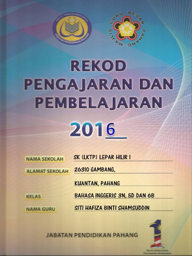 Muka Depan Buku Rekod. Fail ini digunakan bagi memastikan guru. Muka depan buku rekod mengajar v2.