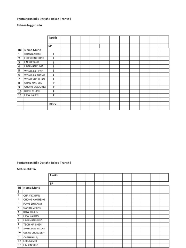 Aziezah shamsudin 16 February 2019 at 1300. YEAR 1 TRANSIT FORMS. CONTOH REKOD TRANSIT UNTUK SEMUA MATAPELAJARAN.