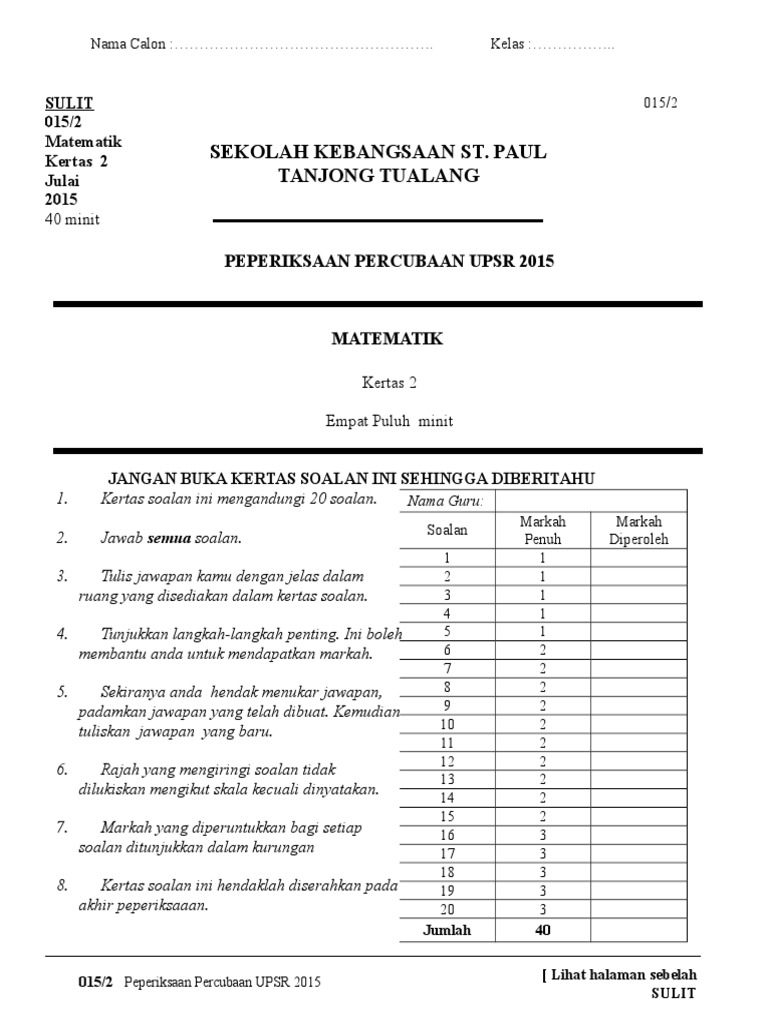 Biasanya soalan-soalan jenis ini merupakan soalan tentang pengetahuan asas kemahiran matematik. Sains kertas 1 upsr 2017 bahagian a. MATEMATIK KERTAS 1 UPSR 2018 Yu.