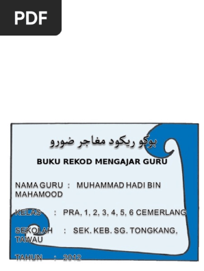 Biodata guru senarai tugas catatan kehadiran kursusmesyuarattaklimat jadual waktu senarai buku teks murid senarai buku rujukan guru rancangan pelajaran tahunan rancangan pelajaran harian dan rekod kemajuan pelajar. Guru-guru wajib menghantar buku rekod mengajar setiap hari Jumaat. Setiap guru akan diberi sebuah buku rekod mengajar dan.