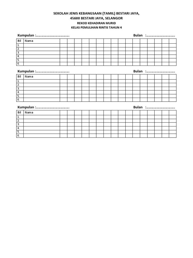Rekod Rumusan Kehadiran Murid Kelas Pemulihan Pdf