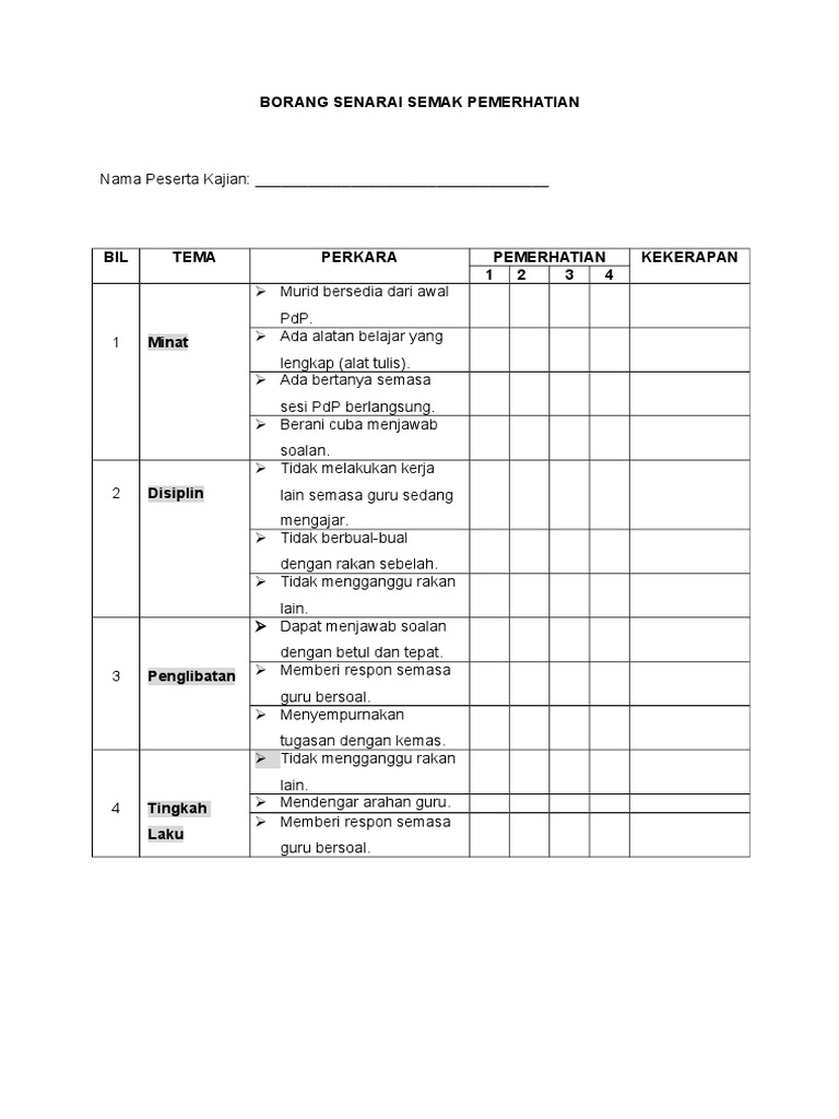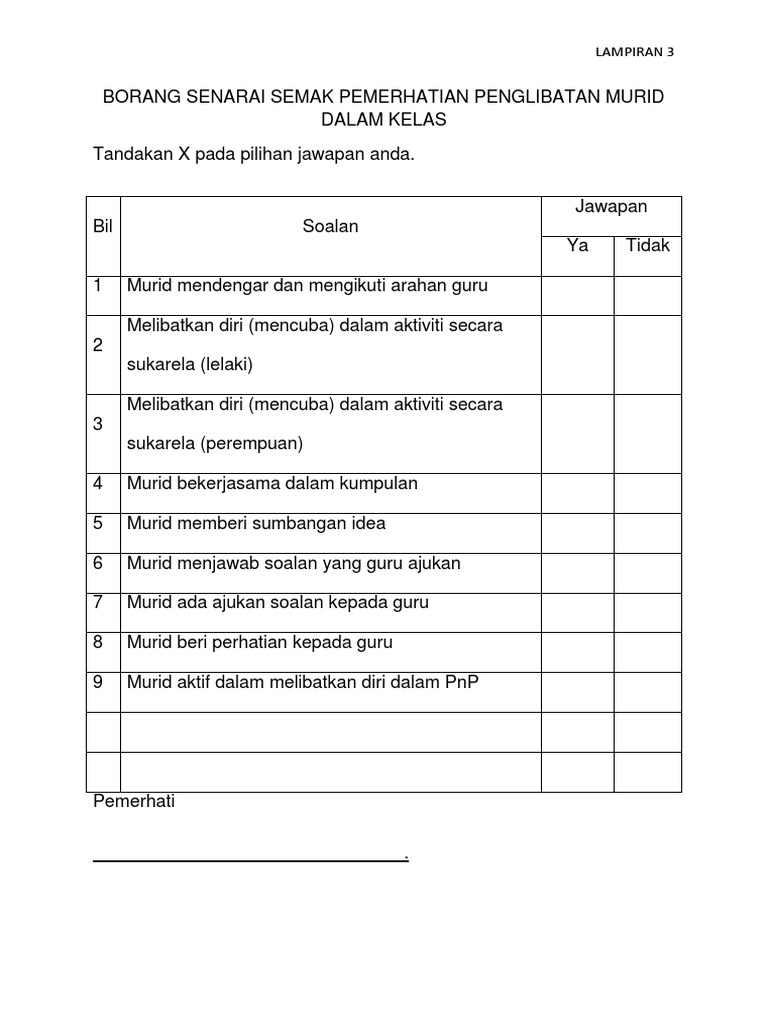 Borang Senarai Semak Pemerhatian Penglibatan Murid Dalam Kelas Pdf