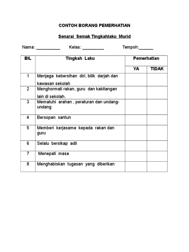 15 contoh instrumen pentaksiran bilik darjah pbd. 3 adakah bahasa yang digunakan mudah untuk difahami dan. Setiap pelakuan dan apa yang dikata oleh murid akan dicatatkan sepanjang tempoh pemerhatian.