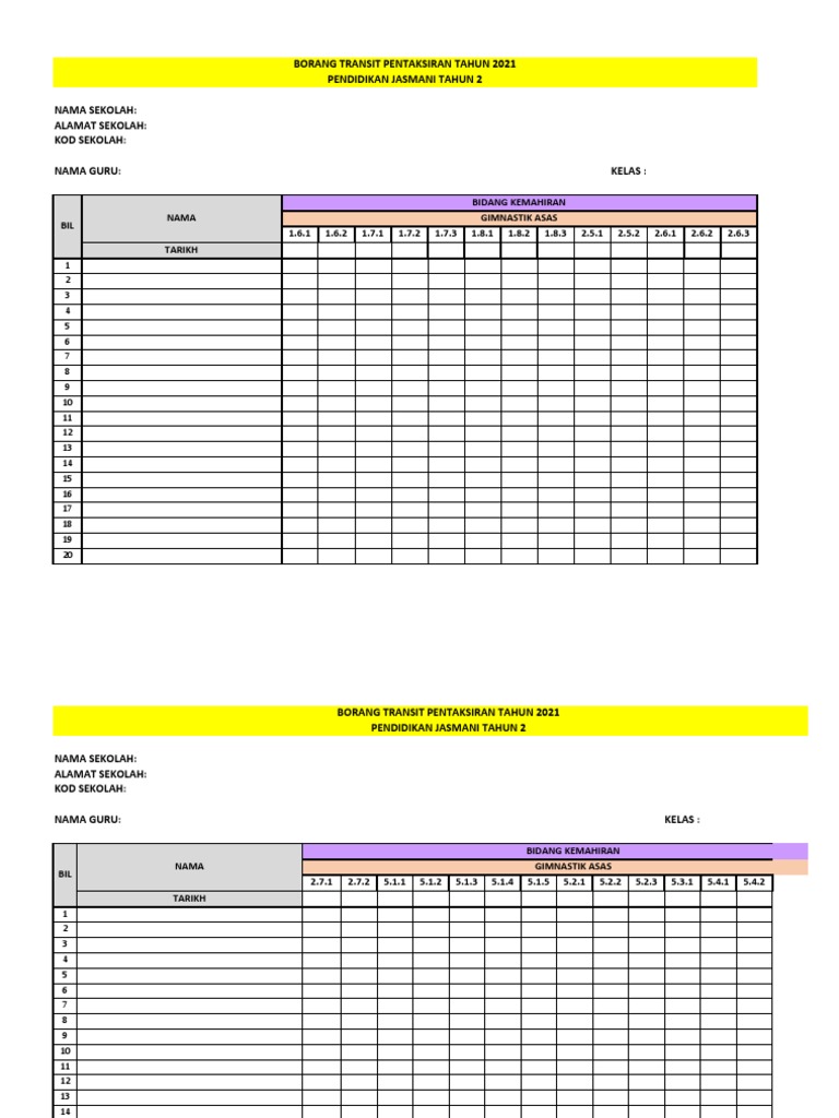 Template Borang Jajaran Pbd 2021 Untuk Tahun 1 Hingga Tahun 6