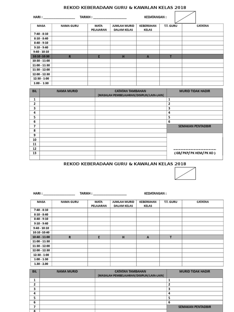 Buku Rekod Keberadaan Dan Kawalan Kelas Pdf