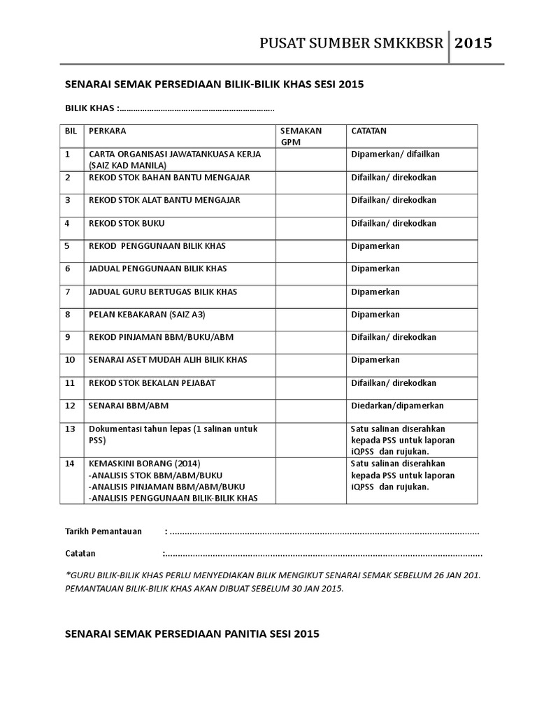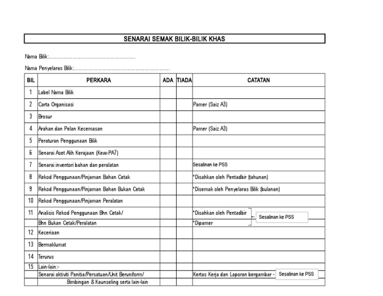 Senarai Semak Persediaan Bilik Khas 2015 Pdf