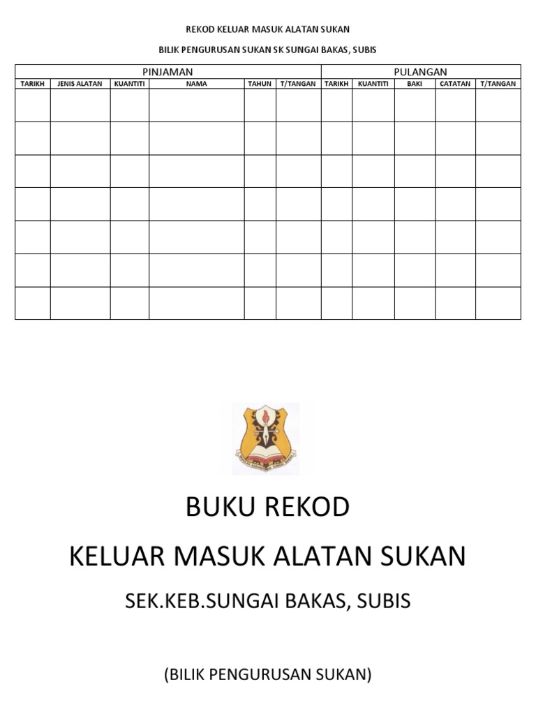 Buku Rekod Keluar Masuk Alatan Sukan Pdf