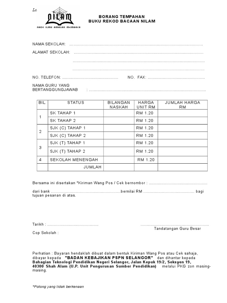 Borang Tempahan Buku Nilam Pdf