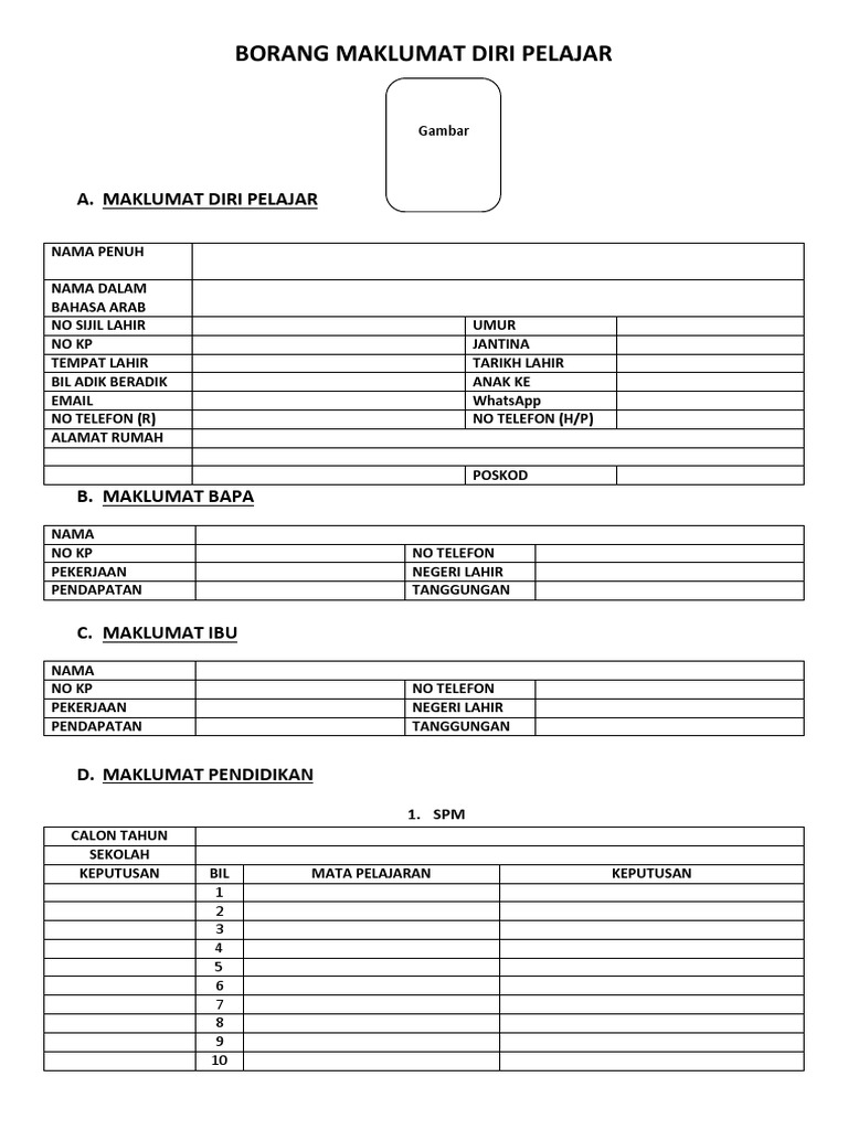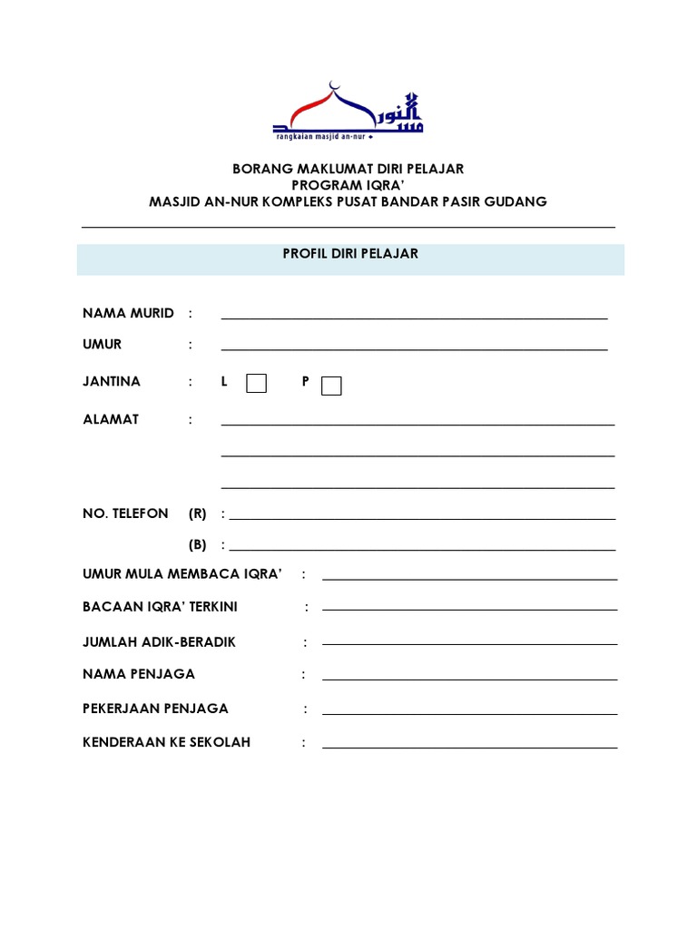 Contoh Borang Maklumat Diri Pelajar Pdf