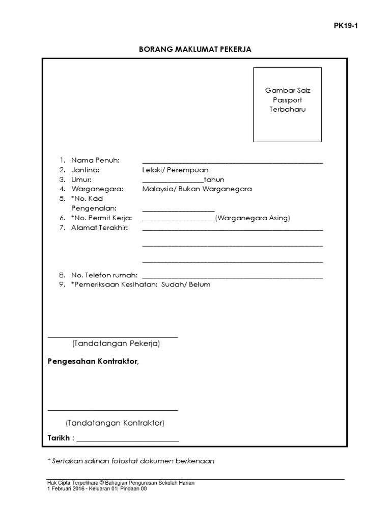 Pk19 1 Borang Maklumat Pekerja Pdf
