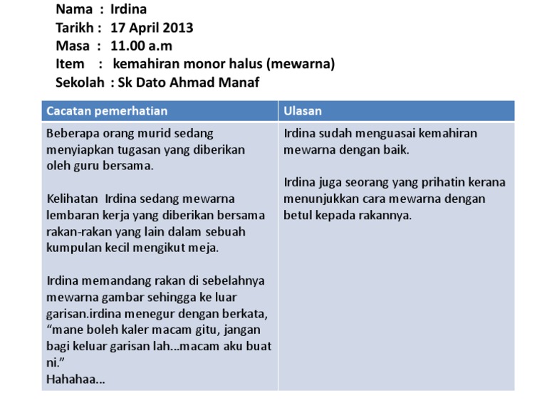 Contoh Borang Rekod Anekdot Pdf
