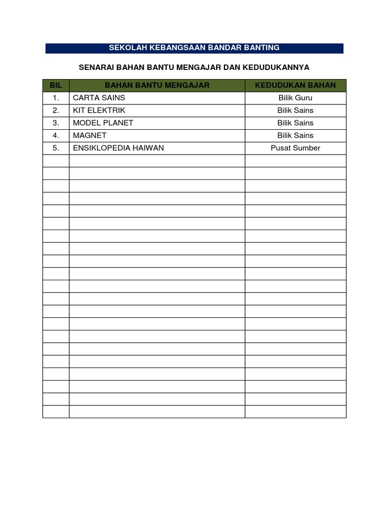Papan tulis atau papan hitam Bahan asas dalam pengajaran Digunakan untuk mencatat isi-isi pelajaran. Nama No Kad Pengenalan Nama Sekolah Tahun. Antara topik yang boleh disokong denganbahan bantu mengajar dalam pengajaran dan pembelajaran kemahiran hidup sekolah rendahialah sepertimana ditunjukkan dalam jadual 2 1 jadual 2 1 bidang kemahiran.