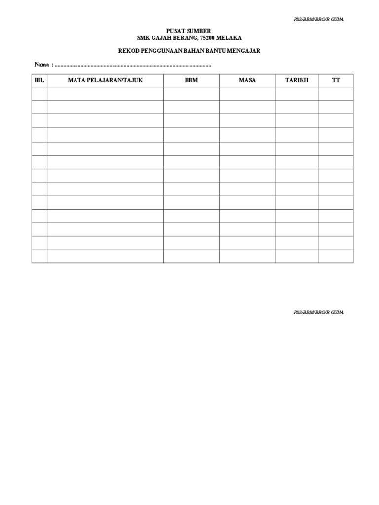 Rekod Penggunaan Bahan Bantu Mengajar Pdf
