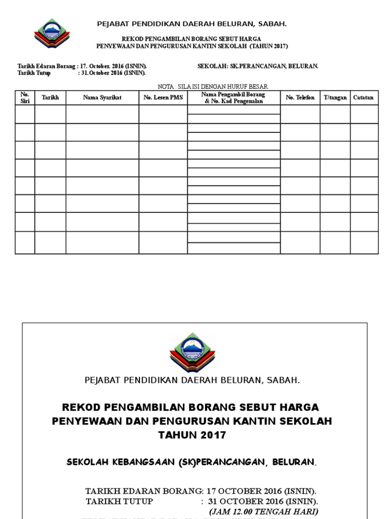 Rekod Pengambilan Borang Sebut Harga Kantin 2014 Pdf