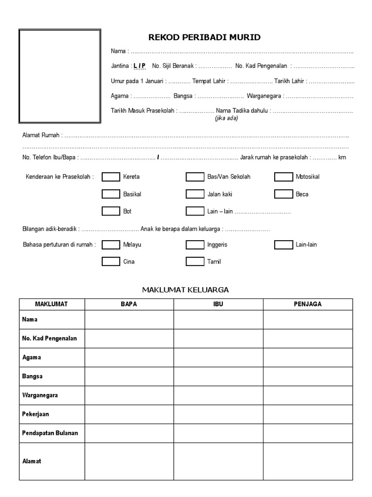 Borang Rekod Peribadi Murid Prasekolah Pdf