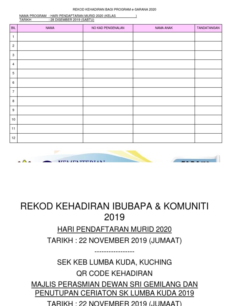 Rekod Kehadiran Bagi Program Esarana Pdf