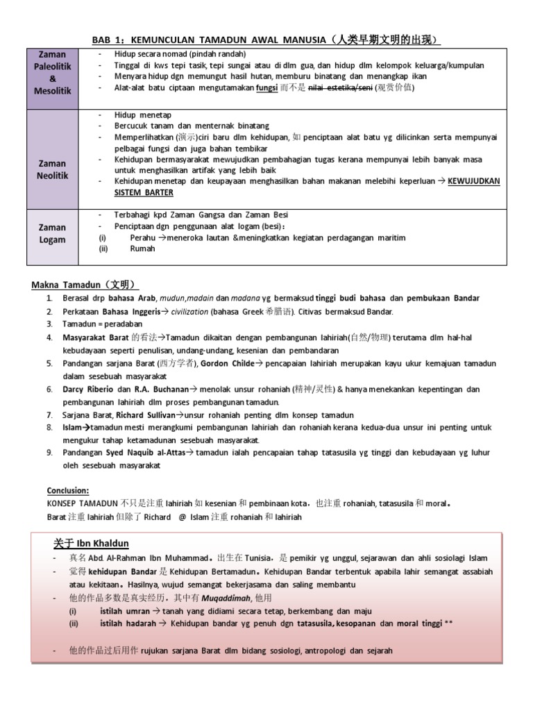 Tingkatan 4 Sejarah Bab 1 Kemunculan Tamadun Awal Manusia