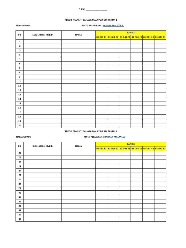 Rekod transit tahun 1. Template Pelaporan PBD KSSR Semakan 2020 Terkini bagi Tahun 1 Tahun 2 dan Tahun 3 telah dimuat naik. Rekod Transit Check List Evidens KSSR Mata Pelajaran Tahun 1 Dan 2. Join our community just now to flow with the file REKOD TRANSIT BM TAHUN 1 and make our shared file collection even more complete and exciting.