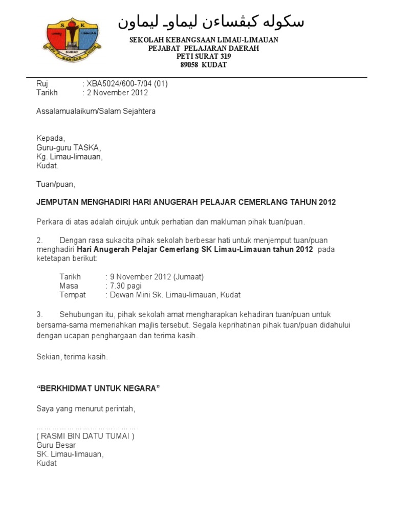 10hb Nov 2010 Tempat. Tuan memohon sumbangan bagi program hari kecemerlangan dan penyampaian hadiah tahun 2013 perkara di atas adalah dengan. 07-6549712 Bilik Guru Besar.